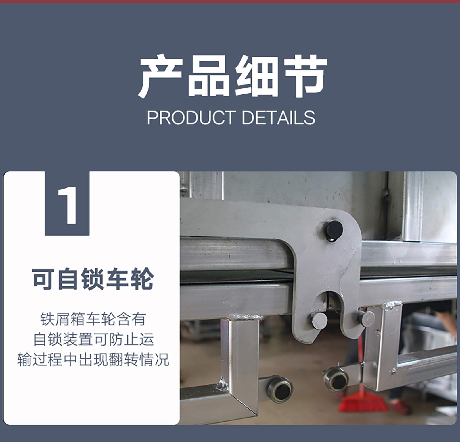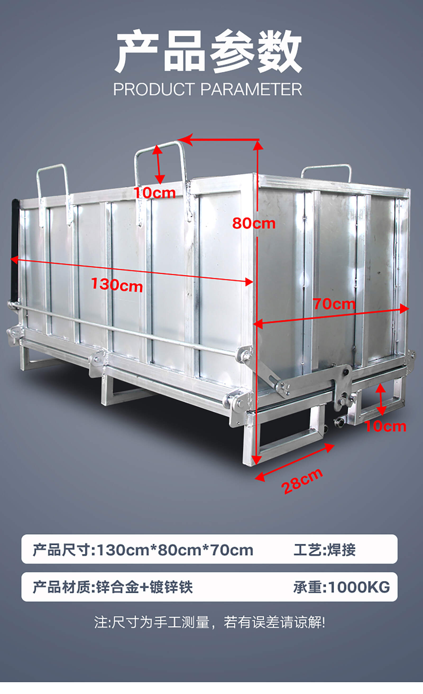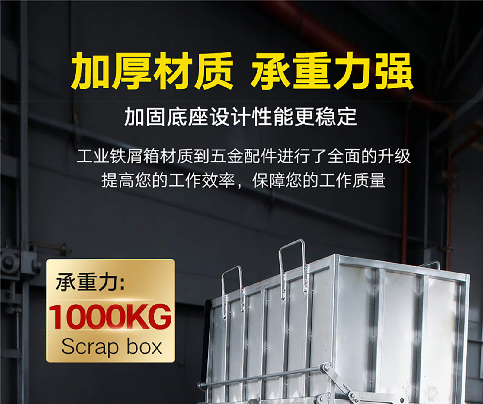 工业铁屑箱:工厂直发、加厚钢板、自卸自锁 名 称 工业级铁屑箱 定 做 支持定做 材 料 冷轧钢板 工 艺 酸洗、磷化、喷塑 产品用途 运料、装卸 产品特性 可堆垛结构、可移动、可又车使用 产品结构 便捷省力