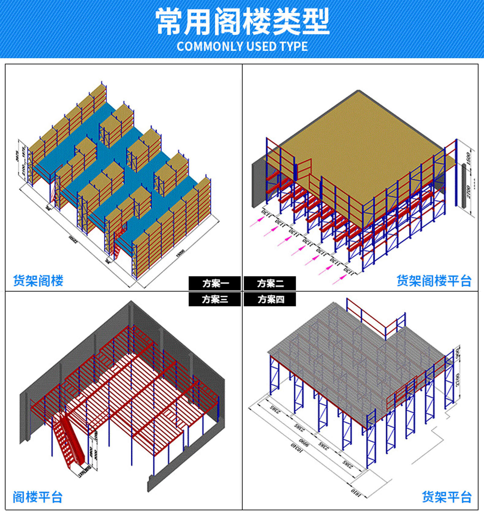 阁楼货架平台:可载200-1000kg/平方(均载)的货物,可具备价格低,方便拆装,安装方便等优势。